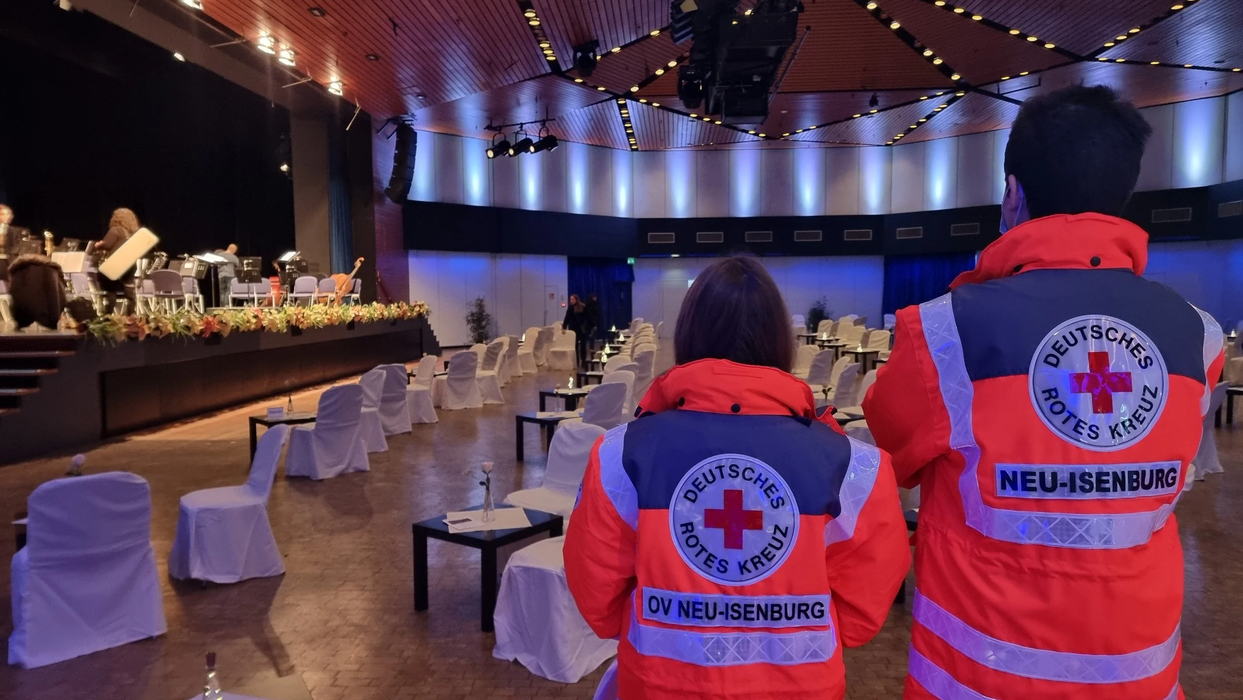Am Sonntag leisteten dann zwei unserer Einsatzkräfte den Sanitätswachdienst in der festlich geschmückten Hugenottenhalle beim Neujahrskonzert der „neuen Philharmonie Frankfurt“.